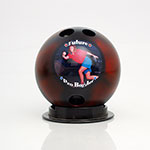 Mini Bowling Ball Actual size is 4 1/2" in diameter with a round imprint area that measures 2 1/2". |