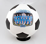Regulation Size Soccer Ball Actual size measures 8.5" in diameter with a round shaped imprint area of 4 1/2" |